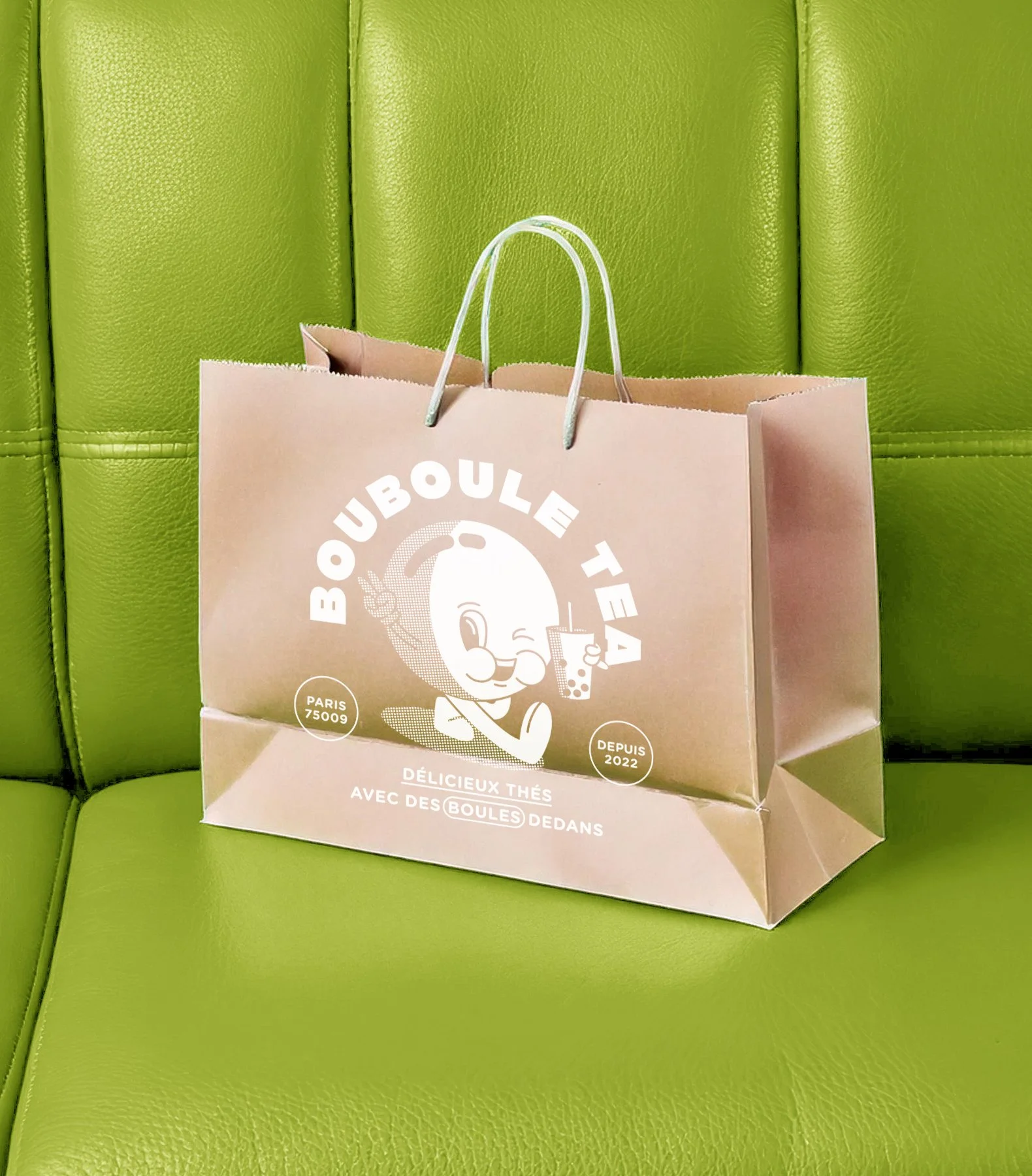 Création d’une identité fictive pour une boutique de bubble tea du nom de “Bouboule tea”.