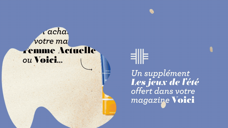 Motion design diffusé dans tous les Relay proposant l’opération un échantillon de crème solaire visage Nivea Sun pour l’achat d’un numéro de Voici ou de Femme Actuelle.